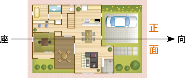 建物の向きは伝統風水の専門用語で座向(ざこう)と呼ばれます。座(ざ)は建物の背面であり、向(こう)は建物の正面です。