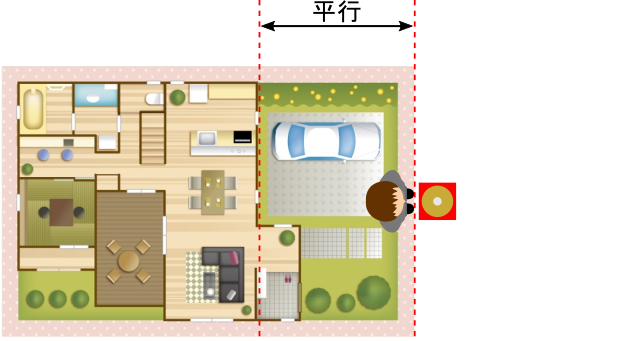 このとき、できるだけ家から離れて立つようにしてください。なぜなら金属物によって方位磁石の針がぶれてしまい、正確な方位を測定できなくなるからです。方位磁石の針は自動車やドアノブなどに敏感に反応しますので、注意が必要です。